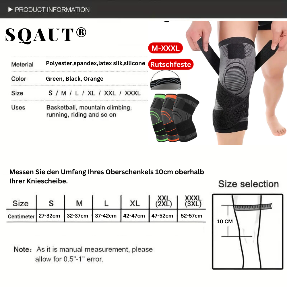 ORGINAL SQAUT ® Kniebandage Kniestütze Knie Schmerzen Kompression Sport Bandage Knieschoner Bein